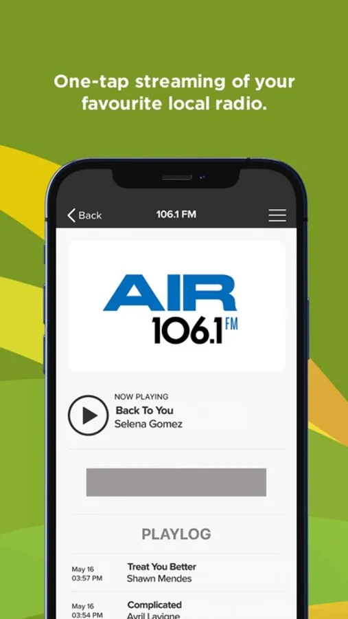 - Streaming: Listen to your favourite local radio station, AIR 106, and look up recently played songs