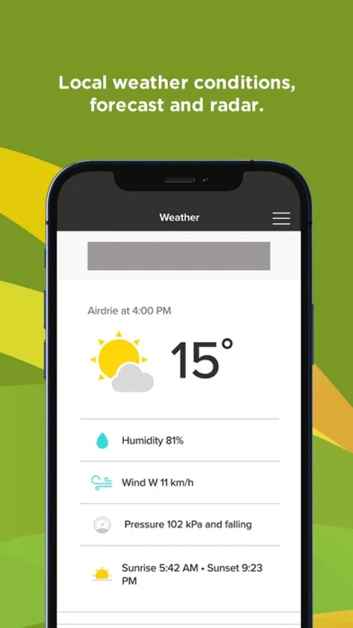 - Live local weather conditions, including hourly and 7-day forecasts and radar maps from Environment Canada