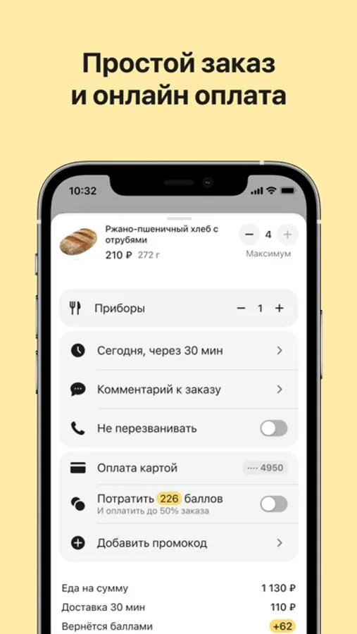 В нашем приложении есть еще много полезного: личный кабинет, возможность отслеживать статус приготовления и доставки заказанных блюд, история выполненных заказов, начисление и расход бонусных баллов, онлайн оплата и другие опции.