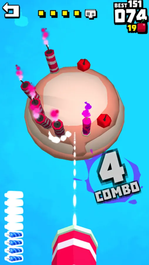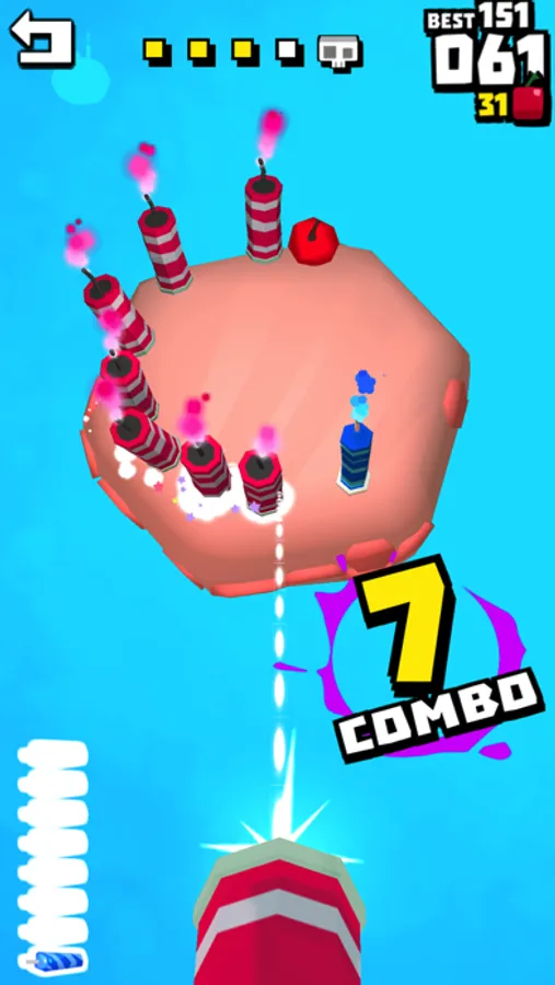 Hit the cake with the candles to explode the cakes and move onto harder cakes to crack. Once you pass enough cakes, you will reach the boss of that level. Take down the boss to unlock a whole new set of levels.