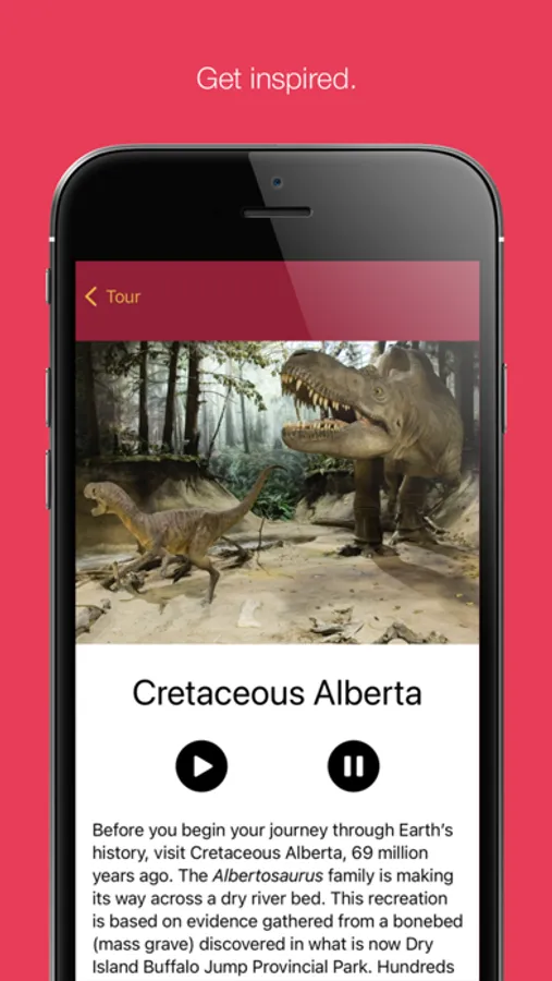 Make the most of your visit to the Royal Tyrrell Museum with our mobile app. Take a tour through the galleries with enriched content, maps, and easily accessible information.