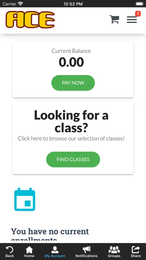 The ACE Cheer app allows you to manage your account with ease, register for classes, parties, and special events. You'll also receive important notifications about class changes, closings, registration openings, special announcements, and upcoming events.