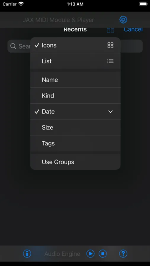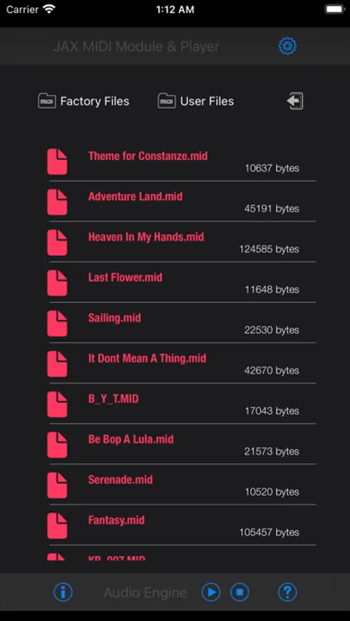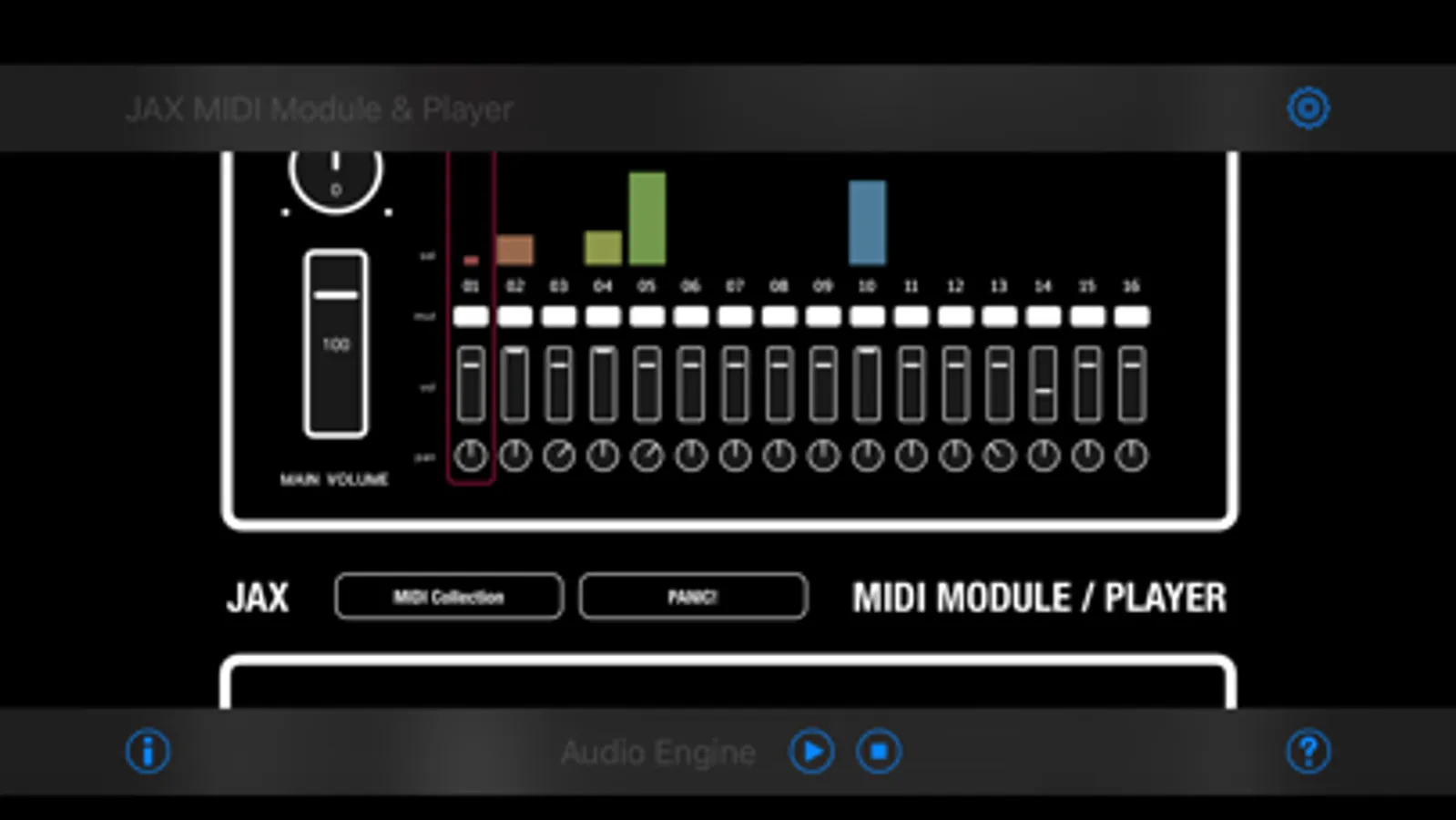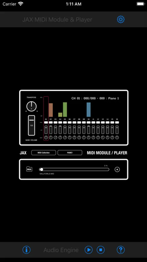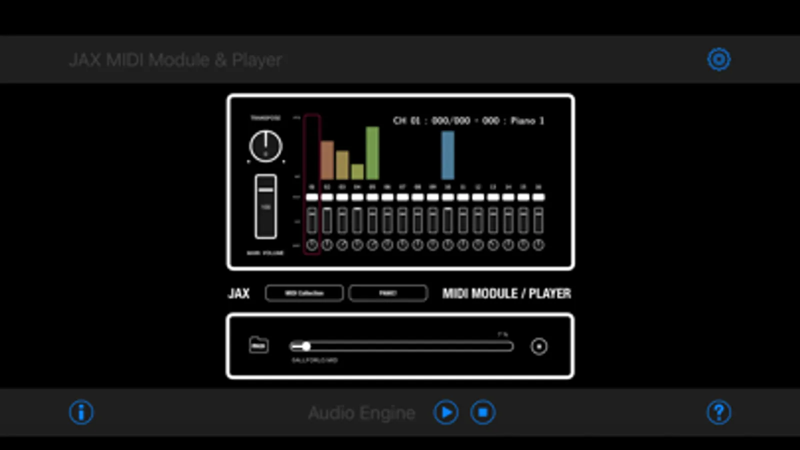 JAX MIDI Module & Player can be used as a GM/GS (General MIDI) compatible multitimbre synthesizer for playing live or as a file player. It is usabale as a sound module for external MIDI signals and as audio unit for usage in any host application, which supports Apples AUv3 format.