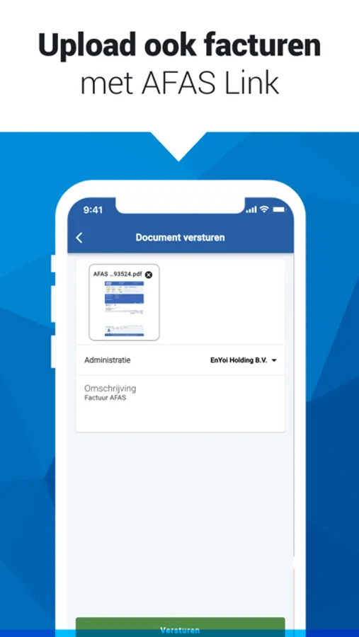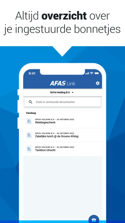 AFAS Link is volledig geïntegreerd met AFAS SB+. In deze app maak je gemakkelijk een foto van je bon of upload je je factuur. Deze stuur je daarmee direct naar je accountant. Lekker makkelijk!