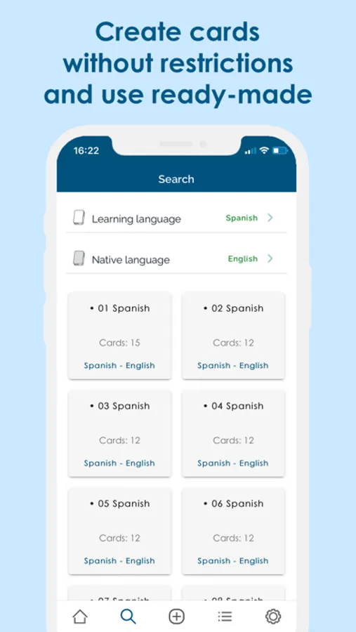 Create your own flashcard sets or use ready-made ones with conversational phrases in many popular languages.