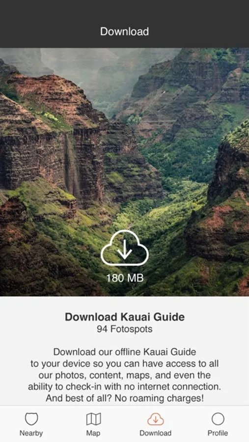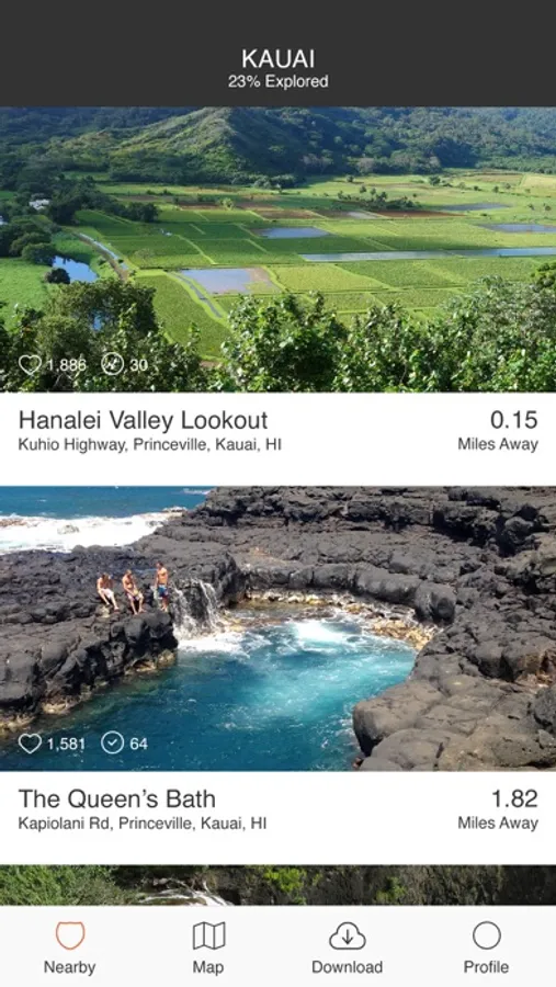 Simply download our offline guide to your phone and, like magic, the app will work when you don't have a cell signal. You'll be able to check in and save attractions, add new photos, and find the exact locations of all the coolest Kauai spots including the Queen's Bath, Glass Beach, Maniniholo Dry Cave, and Wailua Falls - all without having a working internet connection!