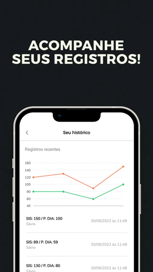 Com o app você registra suas medições, acompanha resultados anteriores, recebe recomendações de acordo com seus resultados, além de possuir um sistema de gerenciamento de medicamentos recomendados pelo seu médico!