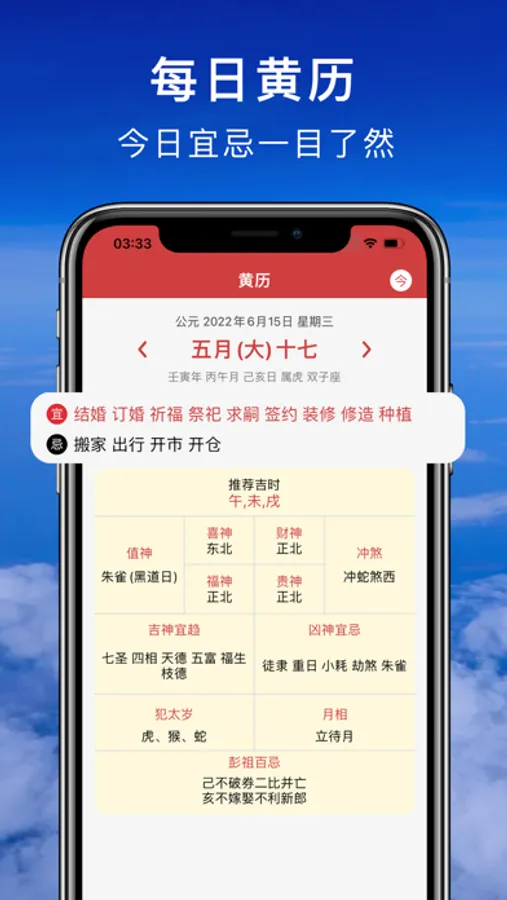 - 黄历:为您提供每日黄历 > > 今日宜忌、吉时推荐、彭祖百忌等。