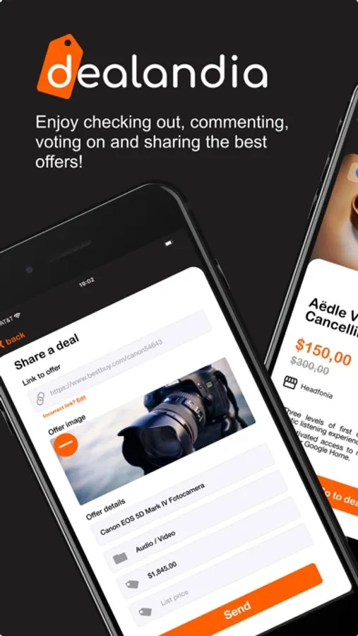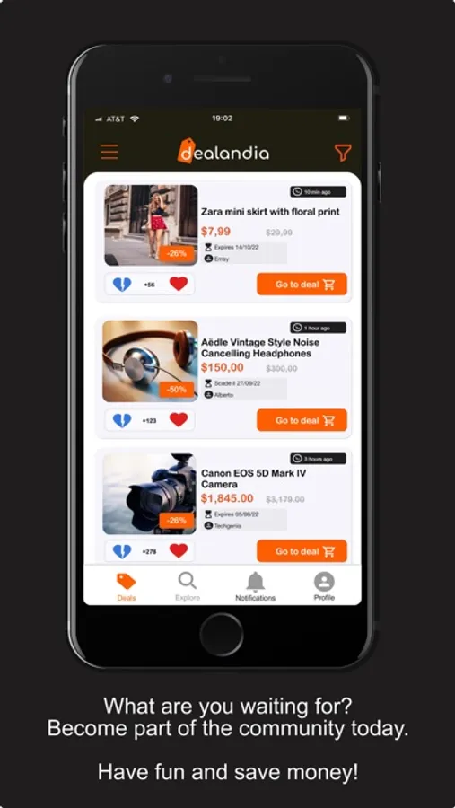 The Dealandia app allows you to: