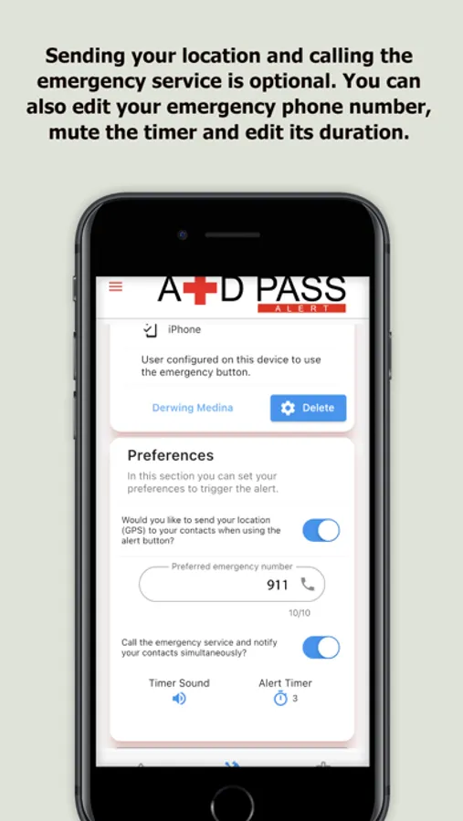 When the AidPass alert button is pressed, it communicates with 911 (or a number of your choice) while an email and a text message with your GPS location and medical sheet are sent to your emergency contacts simultaneously. All in one click.