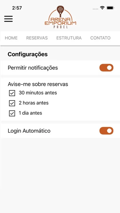 Confira pelo app nossas informações de estrutura, localização e contato com o centro esportivo.