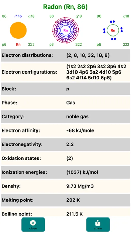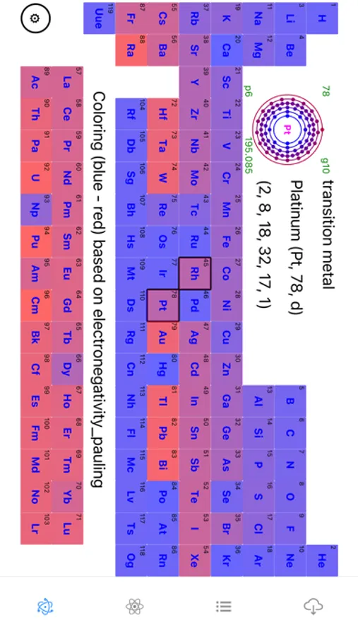 Drag your finger on the periodic table canvas to update elements automatically or tap on an element to see more details.