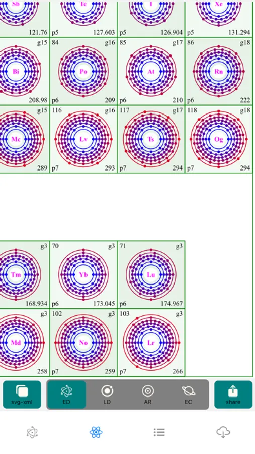 Drag your finger on the periodic table canvas to update elements automatically or tap on an element to see more details.