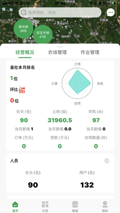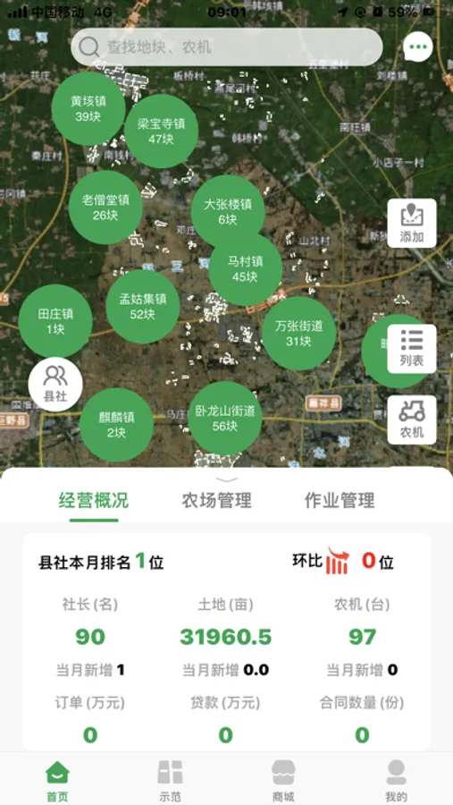 金丰智慧农业管理系统主要功能为各地县社组织下的农户提供田地农场数字服务,实现精准管理,和农资供给、线上指导培训、农机作业监控、农产品销售等农业服务。