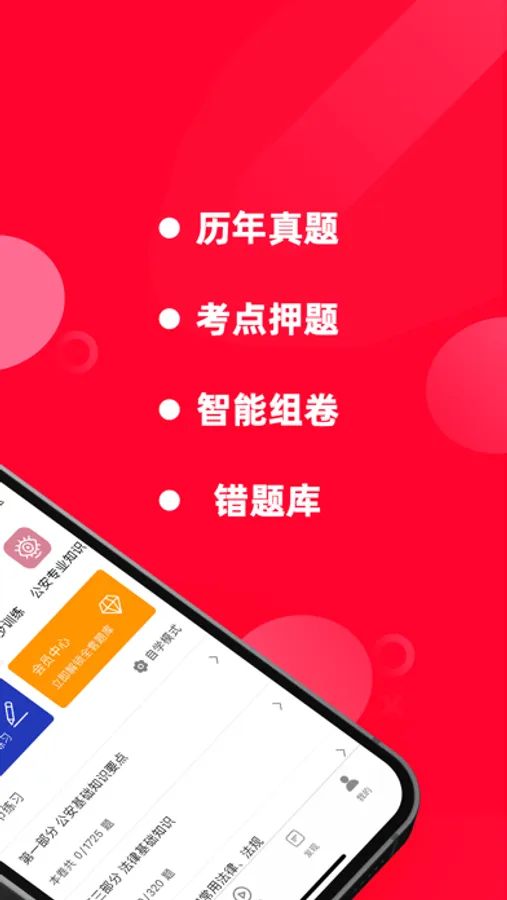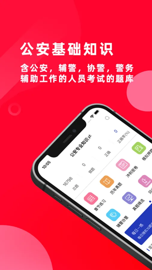 公安基础知识考试题库包括公安,辅警,协警,警务辅助工作的人员考试的题库,包括:公安基础知识、法律基础知识、公安专业知识、法律基础知识、公共基础知识、主要执法依据、行政职业能力测验等,章节练习+历年真题+高频考点+摸拟押题,助顺利通关。