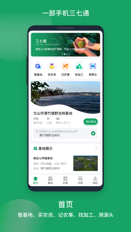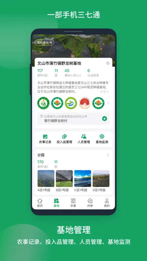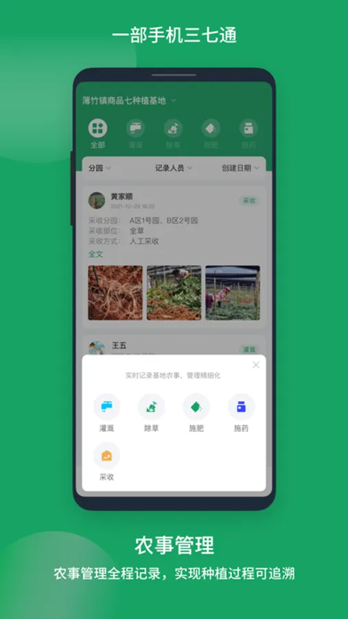 基地管理:农事记录、投入品管理、人员管理、基地监测!