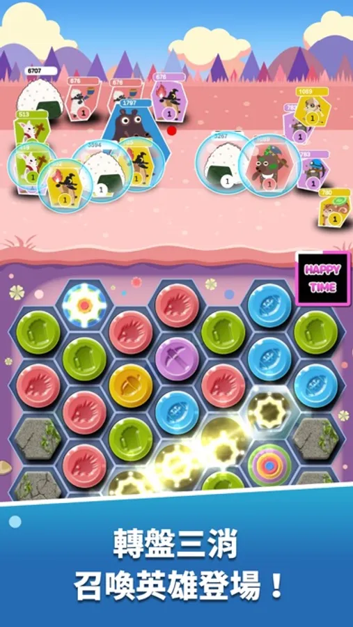 ●『派對捕手』累積能量將觸發Happy Time,啟動所有角色三消普攻轉為技能攻擊!逆轉或一波帶走趁現在!