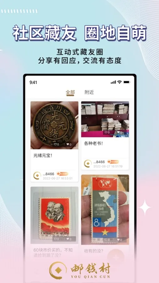 邮钱村是国内一家专业收藏买卖平台,让用户贴近藏品市场,增进文玩收藏市场的规范,更好为藏友提供多重保障。