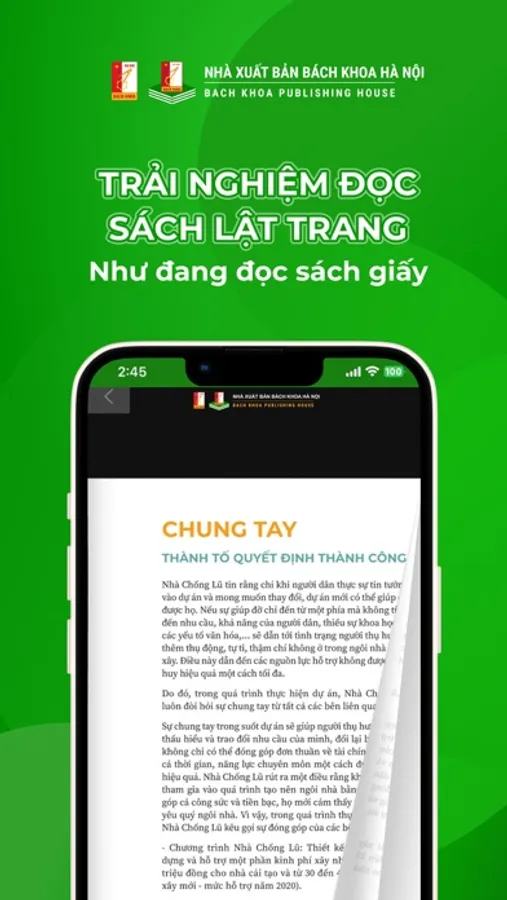 Kính thưa độc giả thân mến. Sau nhiều năm hoạt động trong lĩnh vực xuất bản với hàng ngàn đầu sách và hàng trăm tác giả tên tuổi cùng các đối tác tin cậy, NXB Bách Khoa Hà Nội tiếp tục nỗ lực ra mắt ứng dụng đọc sách điện tử phục vụ bạn đọc gần xa. Cảm ơn quý độc giả đã luôn đồng hành. Kính chúc quý độc giả có những trải nghiệm hữu ích khi sử dụng ứng dụng.