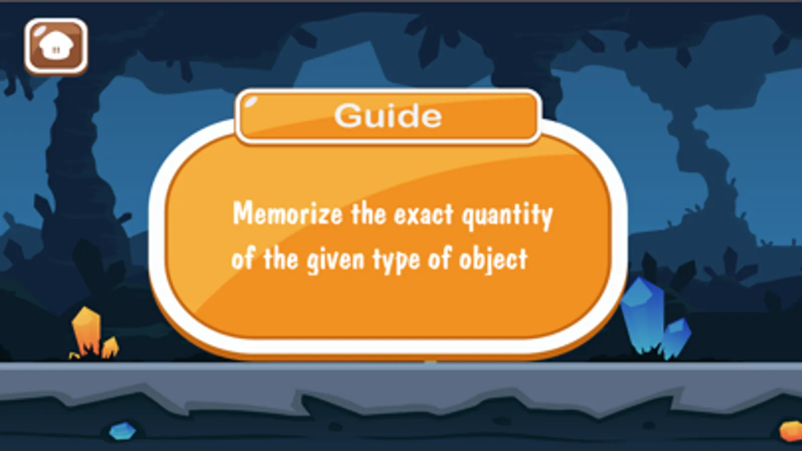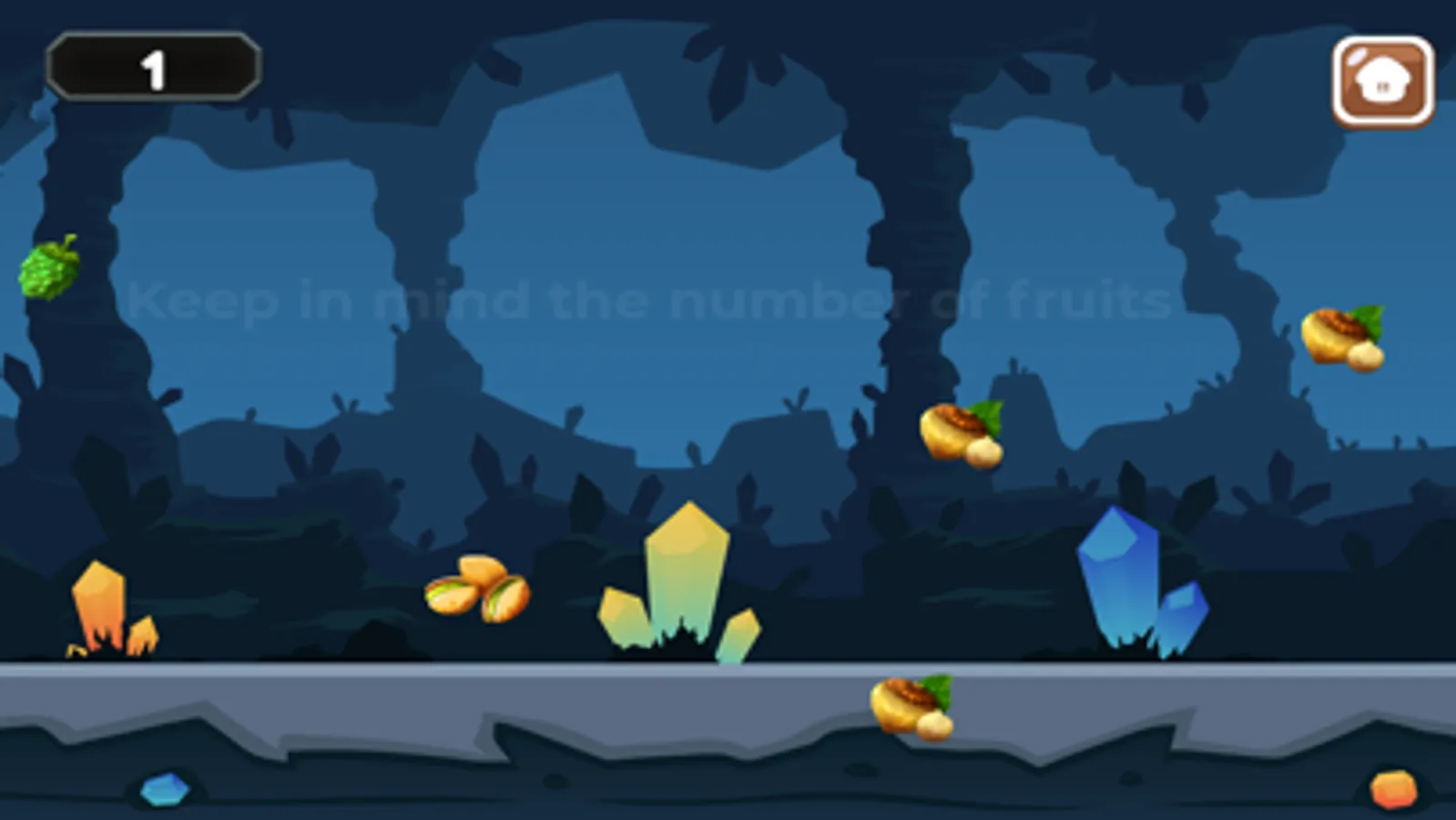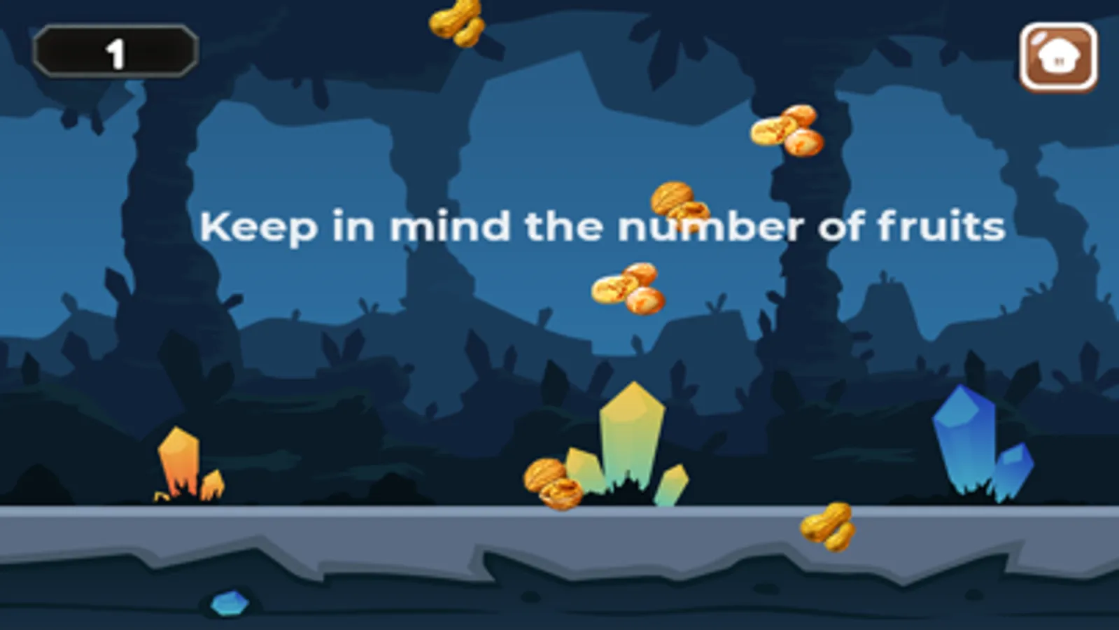 Objects appear randomly and fall from above, after the objects have all fallen. There will be a popup to enter the number of objects that appear, each box to enter the number of that type of object will have 2 up and down arrows next to it to increase or decrease the number. The player has 20 seconds to enter the correct number of items. At the end of the time, if the answer is correct, the player gets points and continues to play with an increasing number of objects. If wrong, the player must play again.