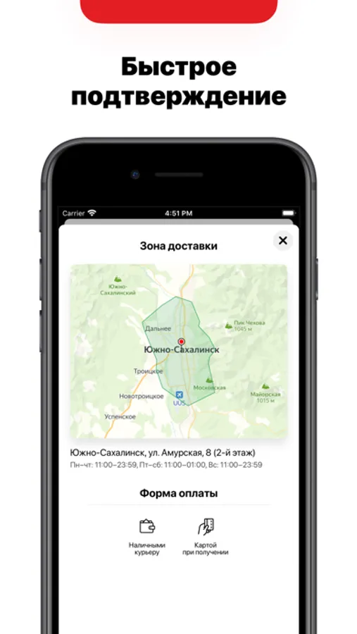 — Быстрый заказ с мгновенным подтверждением через приложение.