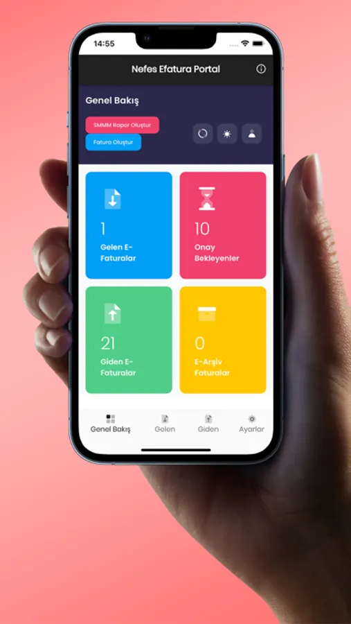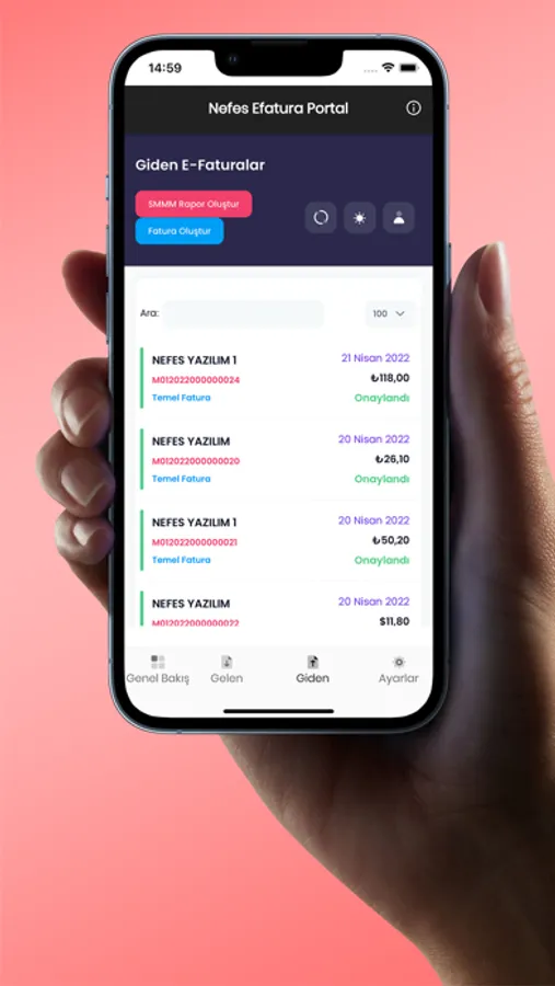 Nefes Yazılım olarak E-Fatura, E-Arşiv, E-İrsaliye, E-SMM,E-Müstahsil E-Belge işlemlerinizi tek ekranda yönetebilmenizi ve diğer resmi muhasebe yazılımlarına uygun raporlar almanızı sağlayan uygulamamızdır