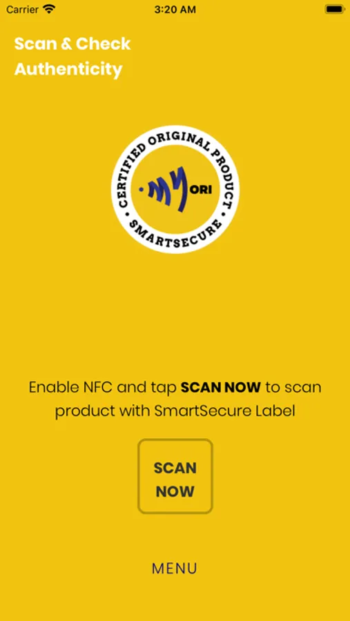 Specifically to scan MyORI SmartSecure labels (NFC) for product authentication.