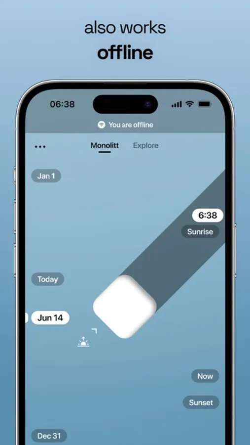 No internet? No problem! Sunlitt works seamlessly offline, ensuring you're always in control of the sun's position, no matter where you are.