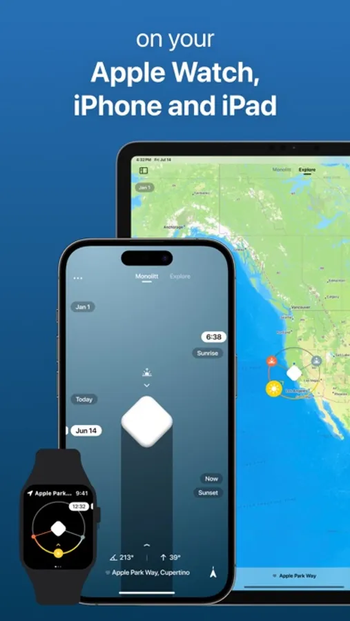 Stay connected to the sun's path on all your devices! Enjoy the full Sunlitt experience on your Apple Watch and iPad!