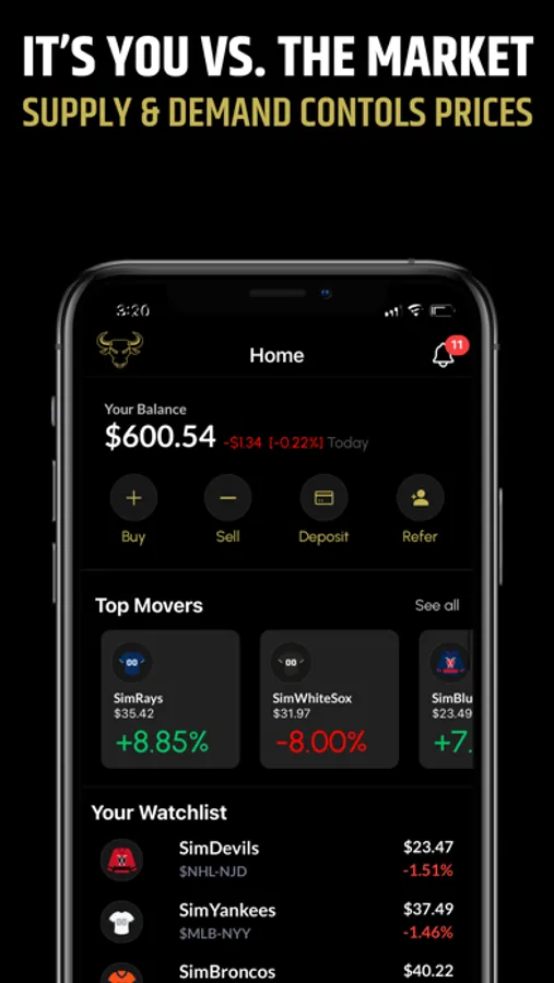 No more “house edge,” no more high risk all-or-nothing bets, no more predetermined odds. Instead, supply and demand controls team stock prices and your ability to profit. With SimBull, FORTUNE FAVORS THE FAN.