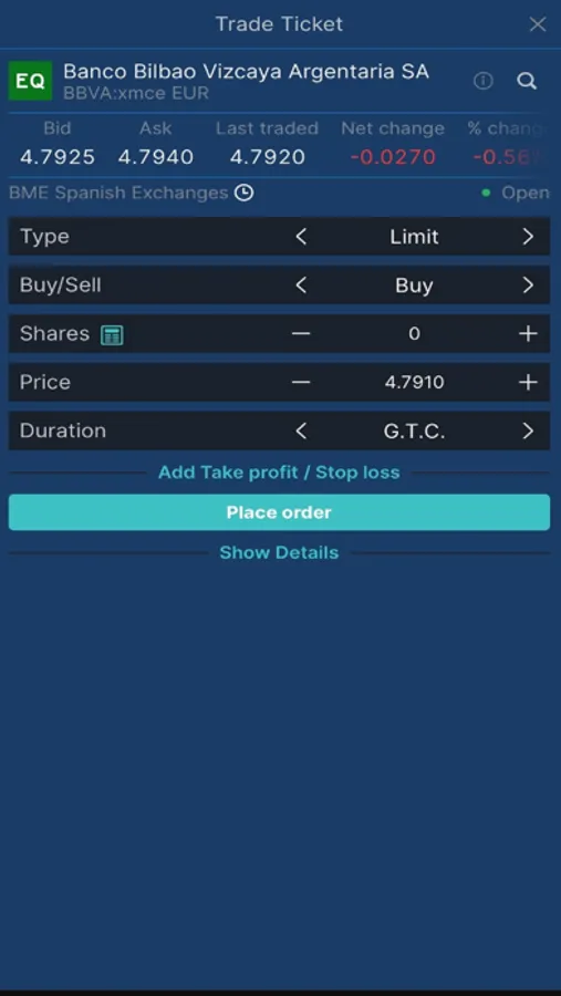 While monitoring markets, you can track your portfolio and manage your positions with different types of orders.