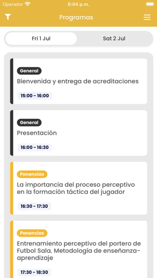 - Consultar todo el programa actualizado en tiempo real, organizado por fecha, hora y modalidad