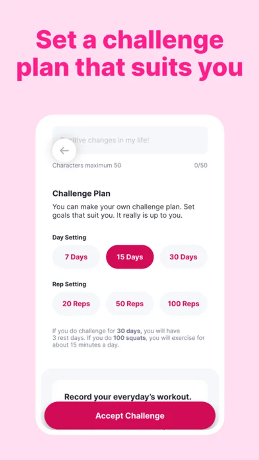 Our challenge rules are strict. If you skip one day, we will guide you to replan the challenge with a more approachable goal and start again. It's not just doing workouts, but building up your mental toughness to make you stronger. With this mobile app, you can get a great tool to make you stronger.