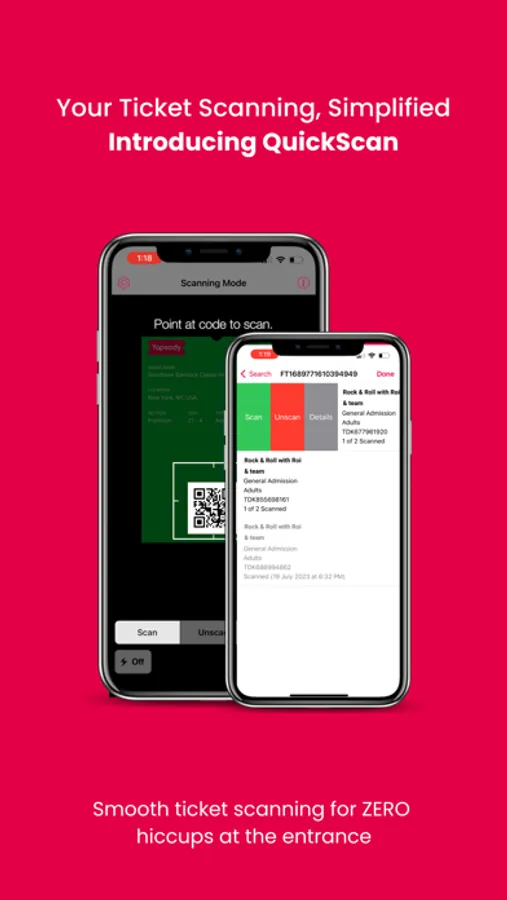 Introducing QuickScan by Yapsody, your ultimate ticket scan app for efficient event entry management with features like robust scanning, recognition of different venues, detection of 'pay later' and refunded tickets, and prevention of early scanning. The mobile app showcases all your live events, empowering you to filter and select specific events for ticket scanning.