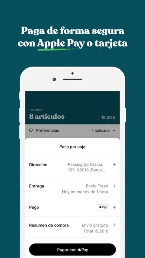 • Paga de forma segura utilizando Apple Pay o tu tarjeta de crédito.