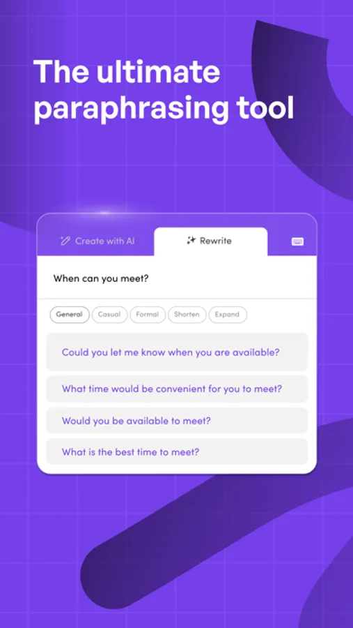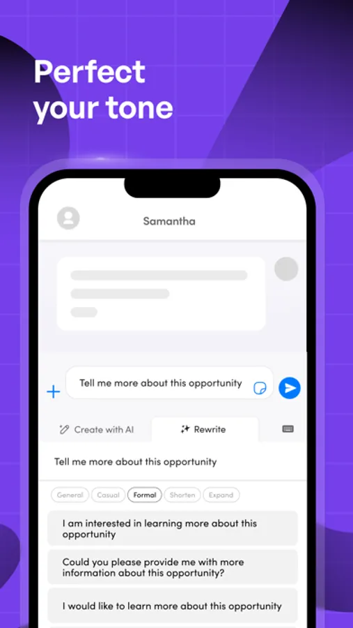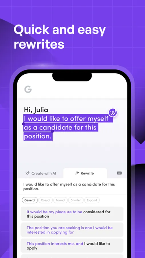 Whether you’re using it to write personal emails, create documents for your clients or exchange instant messages with your colleagues, Wordtune helps you express yourself better.