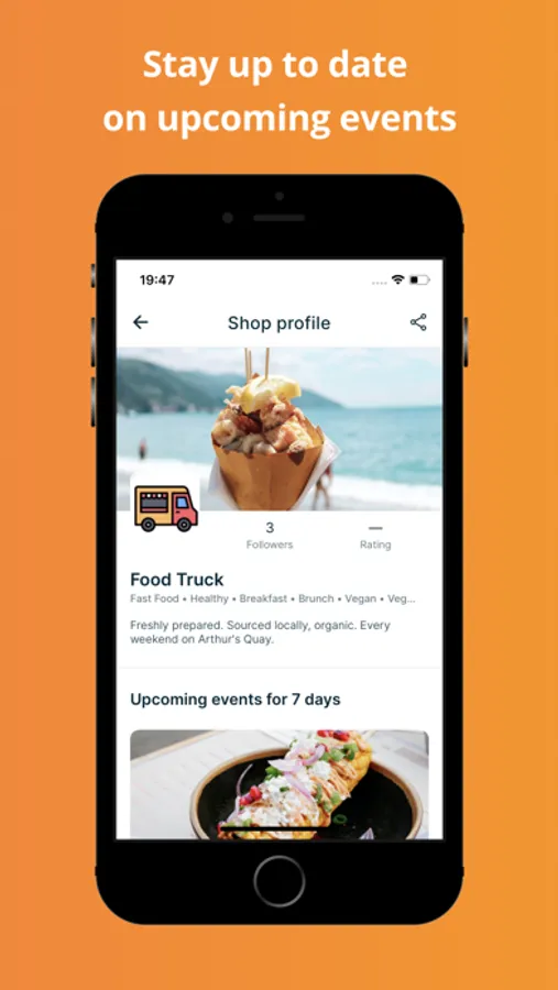 With Zur, you can check in to a new event to let foodies know that you are around and easily send notifications to people around you. We're the perfect business partner for your business.