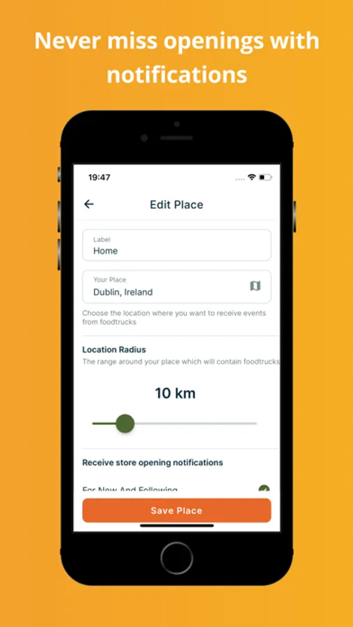 • Save places and get notified about openings of your favourites or new trucks around them.