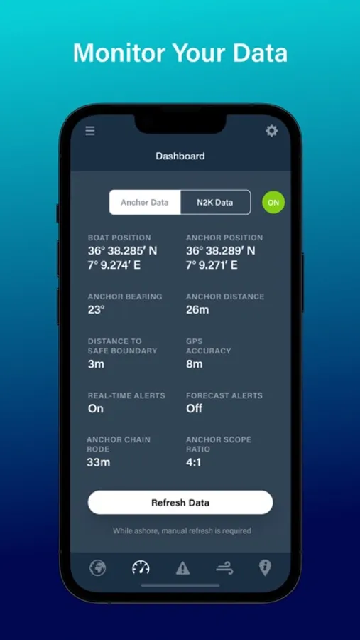Monitor your boat from anywhere on your phone. Set alerts & monitor your boat at anchor, view live N2K data and weather forecasts, on or off the boat. Customise your alerts, then relax knowing your boat is in good hands, with Anchor Alert.