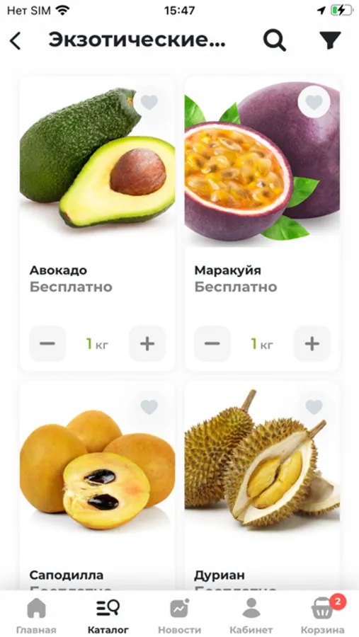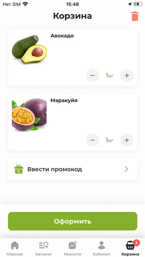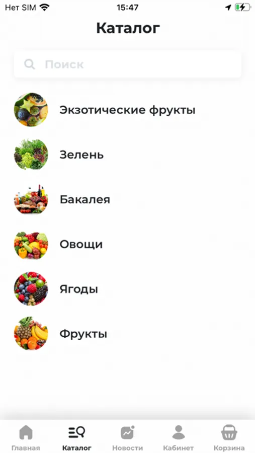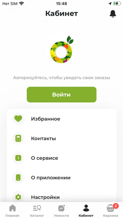 В нём представлено 4 основных блока: «Главная», «Каталог», «Новости», «Кабинет» и «Корзина».