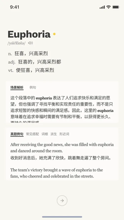 ·根据你的实际学情,将你需要复习的词汇组成新的文段进行推荐——千人千面的文段推荐。不再复习旧的例句,新的语境才能真正强化对词汇的认知;