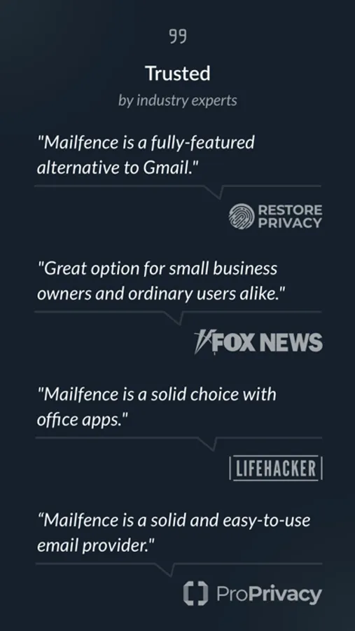• Restore privacy's Sven Taylor wrote, “Mailfence has all the features and options that you are likely to need, whether you are looking to manage the mail for an entire organization, or just want great service for personal use”