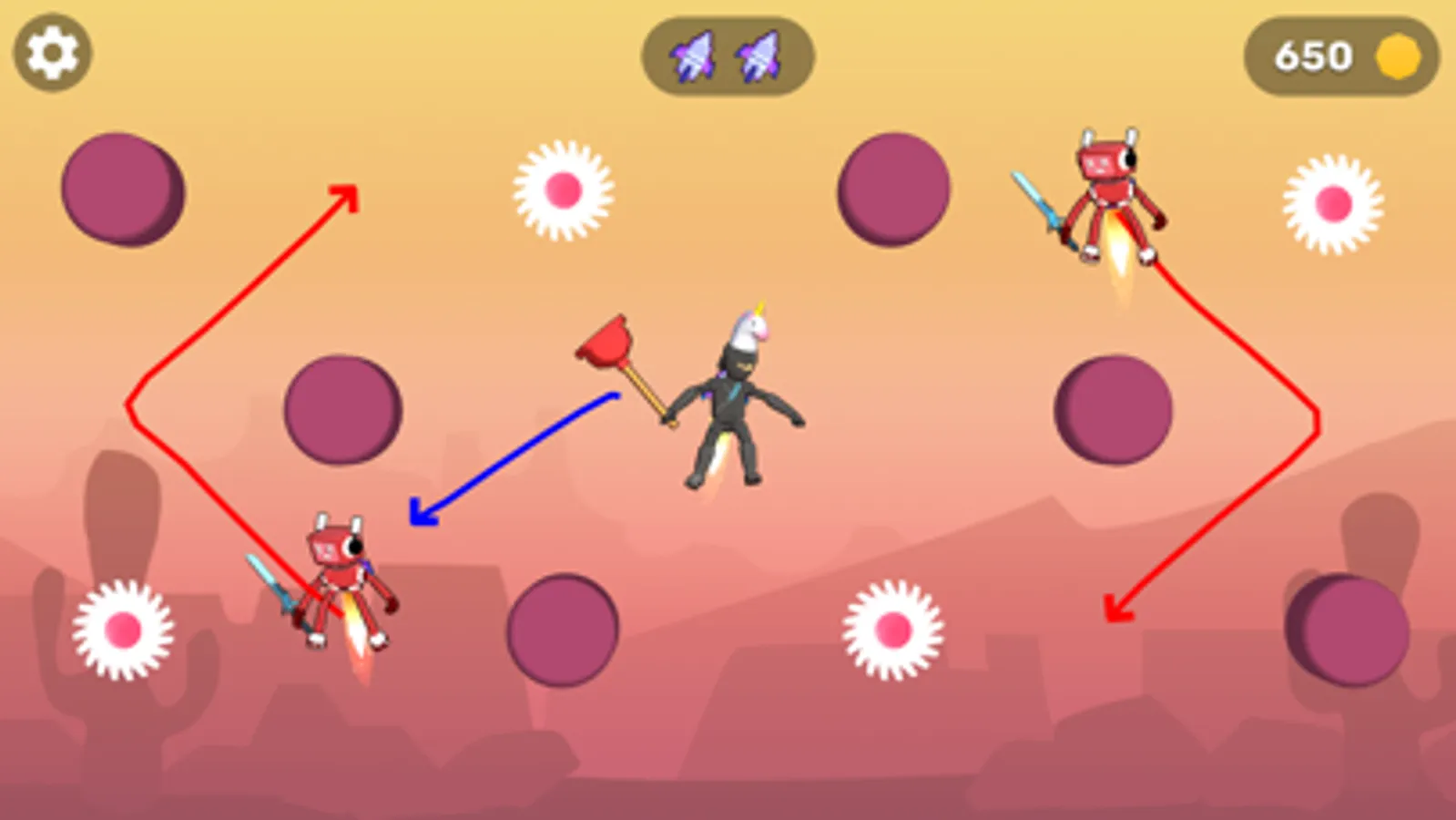 In “Zero Gravity Arena” you have to arrange the flight path of your character in such a way so you can destroy the enemy as quickly and spectacularly as possible! But be careful - your enemy is cunning and agile, so the course of the battle can change at any moment.