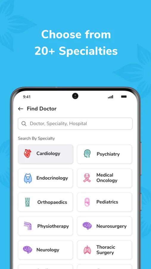 Find a doctor by using different search criteria, like doctor name, specialty or location, and book appointments. Book appointment for the same day or a future date as per your convenience.
