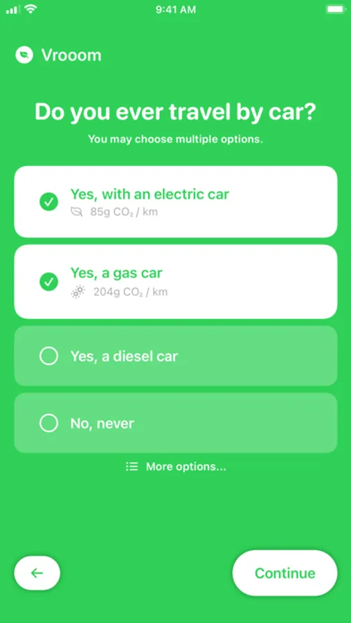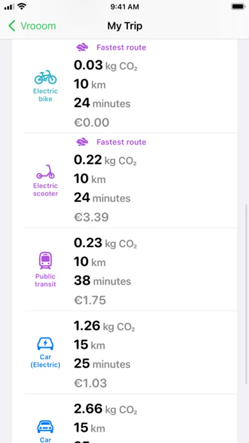 Have you ever wondered how much CO₂ you can save by taking the train instead of the car? Vrooom helps you make better choices and save CO₂.