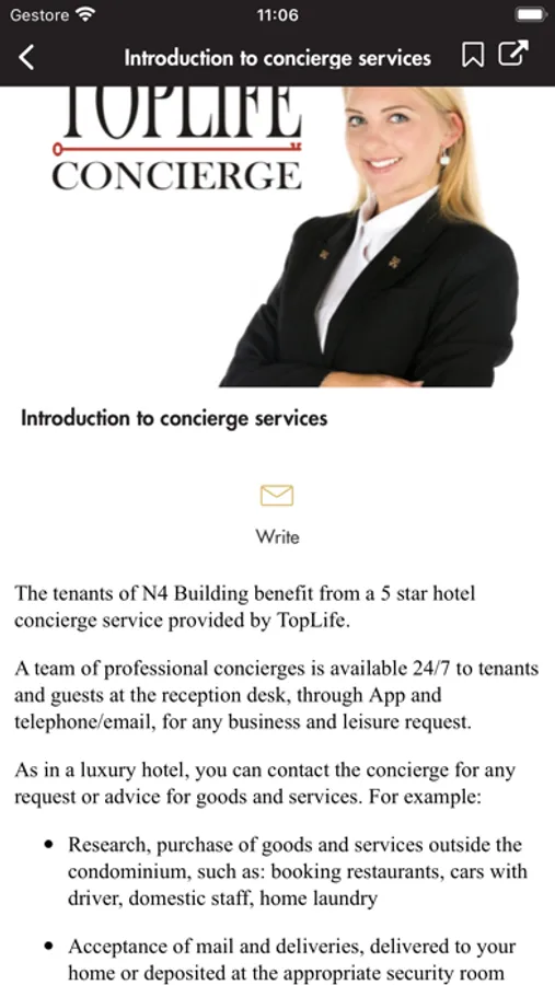 Through the App it is possible to explore the available services, activities and spaces at N4 Building; to make reservations and to contact the concierge. Provided by TopLife Concierge.