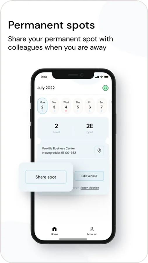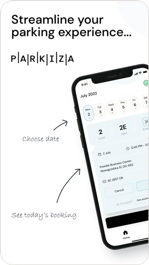 As a user, you can book, share, cancel bookings, and plan your visits to the office with the Parkiza app, knowing that your spot will be waiting for you. There's no need to waste time driving around in search of an empty space. Plan your visits to the office with ease and access the car park according to the company policy. It only takes 10 seconds to claim your parking spot!