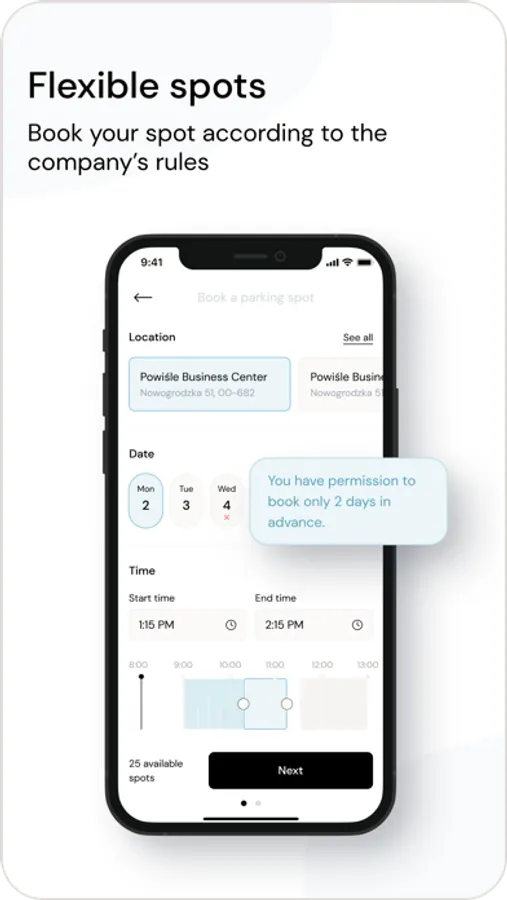 As an organization, provide your employees or visitors with a parking benefit, so everyone has a chance to reserve parking spots – no matter if you have just a few or hundreds of them. Set up and customize booking rules and limits, get data in dedicated web panels for Tenants and Site owners, allocate spots automatically or manually, and manage your company's parking with ease. Optimize your parking lot so it can serve your employees and the company, and make it a benefit to leverage employee happiness, and a bargaining chip in a recruitment process.