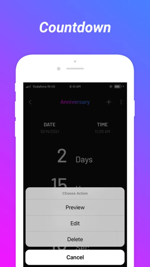 Countdown is app designed to remind you of your important days.