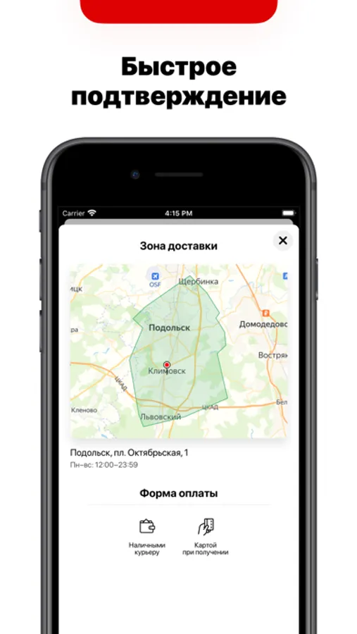 — Быстрый заказ с мгновенным подтверждением через приложение.